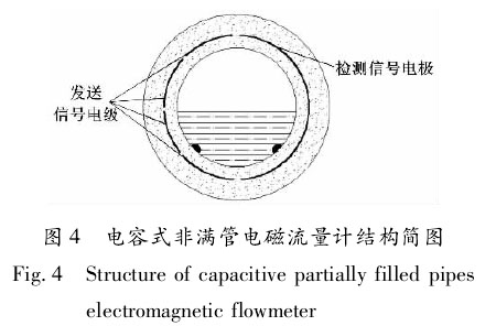 ②電容式非滿管生活污水流量計h。電容式非滿管生活污水流量計結構簡圖如圖4所示。、檢測信號電極 發送信號電