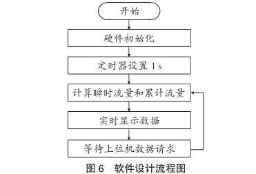 上電后程序對DSP的硬件資源進行初始化,包括中斷系統、GPIO口、定時器/計數器、通信端口及基本的時鐘設置。程序每秒對接收到的脈沖進行計數,其除以儀表系數后的結果作為瞬時流量,同時在時間上對瞬時流量進行累積,計算出兩種流量后,將其實時顯示在液晶顯示屏上,同時將數據保存,**等待上位機電腦對數據的讀取。通信采用MODBUS協議,波特率為9600b/s,無校驗,8位數據位,1位停止位。圖6為微處理器功能設計流程圖。