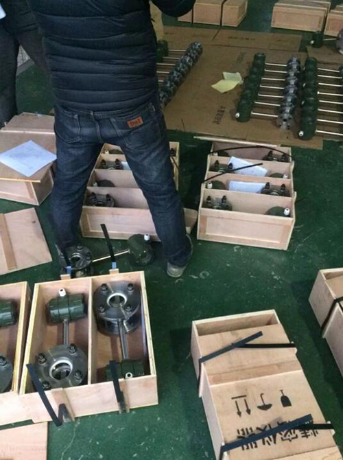 Ⅱ取下表體寬度的一段管,焊上兩片法蘭連接孔同心,將傳感器螺栓緊固好。