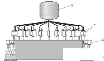 圖6 流量計和閥門的安裝位置示意圖(1代表灌裝流量計)
