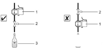 4.2.2 安裝位置。安裝在閥門附近,灌裝流量計不能安裝在控制閥的下游(圖6),如果裝在控制閥的下游,在一個灌裝周期結束后,傳感器的測量管道完全排空,這樣會嚴重影響下個周期的測量。