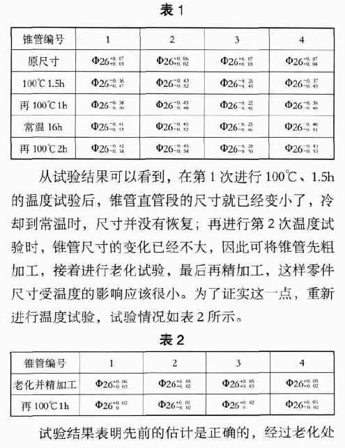 由于錐管老化試驗的溫度為100℃,而產(chǎn)品的使用溫度只有70℃,因此按改進的工藝加工錐管,必定能滿足產(chǎn)品的設(shè)計要求。