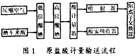 用陽離子交換樹脂制水要用酸作為再生劑。國內電廠多選用鹽酸。鹽酸用傳統的箱式計量方法,使系統操作復雜,安全性能降低,還會嚴重污染環境。一種用智能電磁流量計代替鹽酸計量箱的負壓輸送鹽酸系統能克服上述缺點。該系統自運行以來,使用情況良好,維護方便,受到工人們的歡迎。