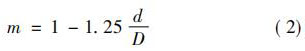 式中: 珋v 為旋渦發(fā)生體兩側(cè)平均流速,m / s; d 為旋渦發(fā)生體特征寬度,m; Sr 為斯特勞哈爾常數(shù),無(wú)量綱常數(shù); V 為管道流體平均流速,m / s; m 為旋渦發(fā)生體兩側(cè)弓形面積與管道截面積之比。 如,對(duì)于寬度為 d 的三角柱,有: