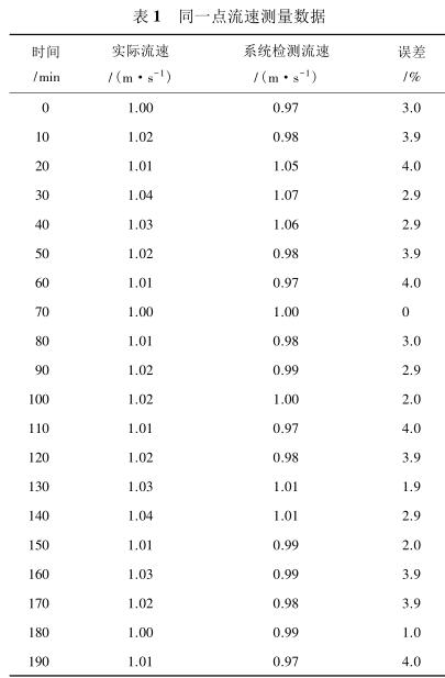 由表 2 測量數據可知,系統在測量低流速液體時(流速小于 1 m/s)誤差較大,達到 5%,當待測液體的流速增大時(大于 1.4 m/s),誤差逐漸減小,基本維持在 3%以內。由此可見系統具有較高的檢測精度,尤其是當管道中的液體流速較高時,系統的檢測誤差不超過 3%,達到了設計預期。