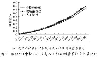由圖 1 可知,人工標尺測得的液位差值與現場液位儀基本吻合,其變化一致,但中控液位儀顯示的數據呈現一定的滯后性,這同信號的傳輸距離與解析方式相關。在日后的測量過程中,對于吸水井和清水池這些對測量結果影響較大的地方,需進行人工標尺讀數,或對儀表校驗后進行現場讀數記錄。