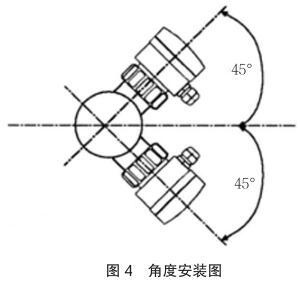 垂直安裝時確保流向由下而上,如圖 4 中箭頭所示,應與管道水平中心線成 45 度角安裝智能型電磁流量計。