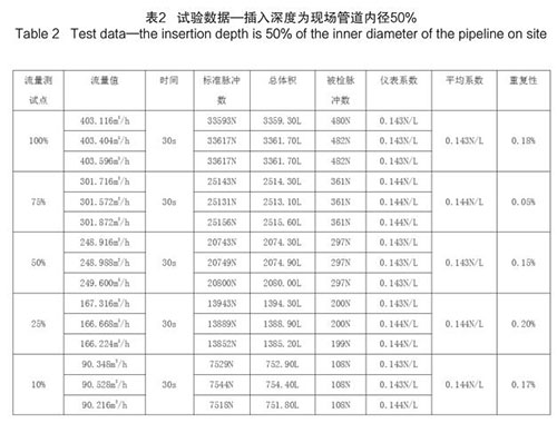 氣體渦輪流量計插入深度為現場管道內徑的 12.5%時,試驗數據如下(以 DN200 為例):