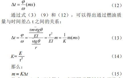 從式(15)中可以得出,當(dāng)渦圈彈簧材料和形狀確定和渦輪外形尺寸確定的情況下,時(shí)間差△ t 與通過的燃油質(zhì)量 m 成正比例關(guān)系,則測量起始脈沖信號(hào)與終止脈沖信號(hào)的時(shí)間差△ t,即可得出通過流量計(jì)的燃油質(zhì)量 m。