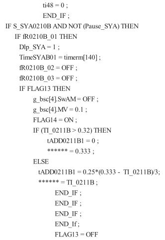 以脫溶回收二氯乙烷溶劑為例,將二氯乙烷升溫和脫溶過程分為三步,現(xiàn)場實際控制 PID 圖見圖 1,由于加熱滯后性比較大,夾套蒸汽閥的調節(jié)采用固定時間間隔調節(jié),控溫間隔為 300 s,即蒸汽調節(jié)閥的設定為每300 s 增加一個升溫梯度,不同階段升溫梯度不一樣,實際操作中又對蒸汽調節(jié)閥的*大開度進行限位,保證蒸汽閥開度不會太大,可以有效防止沖料的風險。