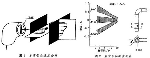 高溫電磁流量計流體流過彎管后,下游產生流速分布畸變,若是兩只鄰近相接的不同平面彎管,除流速分布畸變外還會有漩渦。這些現象要影響裝在下游的大部分類型流量儀表(除容積式等少數類型外)的測量值,因此通常要求在流量儀表安裝點之前有一定長度直管段,改善進入儀表的流動狀況。高溫電磁流量計受彎管影響較小,直管長度要求也遠低于節流差壓式、渦街式等其他流量儀表。但是當前高溫電磁流量計精度為測量值的0.5%,甚至0.2%~0.4,即使影響量較小,還是受到人們的關注。