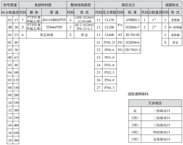 1、防腐式錐形流量計(VA)選型