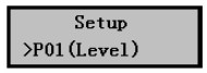 2)按按擊Mode鍵,儀表即可進(jìn)入?yún)?shù)設(shè)置菜單,*先進(jìn)入的就是P01(Level)液位標(biāo)定菜單。