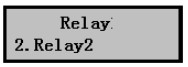 6)設(shè)置好繼電器1參數(shù)后點(diǎn)Mode鍵退回Relay繼電器設(shè)置菜單,按擊▼鍵選擇需要設(shè)置的其他繼電器:例如右圖,表示設(shè)置繼電器2。按擊OK鍵進(jìn)入設(shè)置,方法同上。