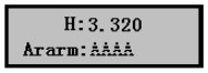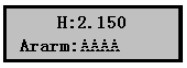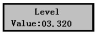 1)儀表上電,儀表進(jìn)入測(cè)量,液晶顯示液位數(shù)值,如右圖,而實(shí)測(cè)液位為3.320m,下面介紹標(biāo)定方法。