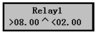 3) 按擊▼鍵可選擇其它繼電器,點(diǎn)OK鍵進(jìn)入繼電器1設(shè)置界面,如右圖,界面中的公式表示繼電器1