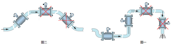 a.上、下游工藝管的內徑與傳感器的內徑相同,并應滿足:0.98DN≤D≤1.05DN(式中DN:傳感器內徑,D:工藝管內徑)