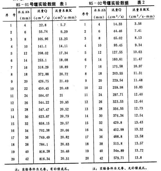 1.具有補償底孔的雙曲線無脊薄壁堰(見圖7),在作用水頭超過補償孔以上時,通過流量與作用水頭之間具有較好的線性變化關系,其流量系數K值基本保持在20.5cm³/s·mm左右。