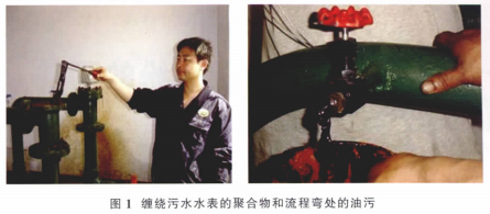 單井的注水量低,更造成污水中的油污和雜質(zhì)的沉降,附著在水表表體的表而和管匯彎道處(見(jiàn)圖1)。
